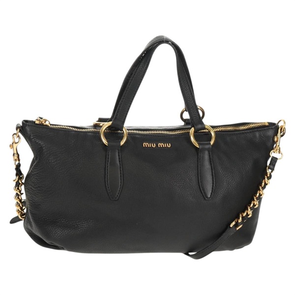【原宿店限定】ミュウ ミュウ Miu Miu ハンドバッグ レザー 2way ブラック ゴールド レディース 149335V