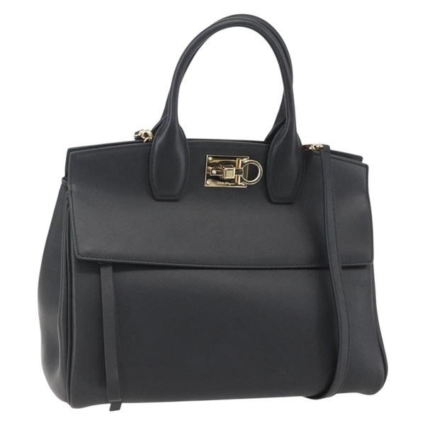 【原宿店限定】サルヴァトーレフェラガモ Salvatore Ferragamo ハンドバッグ ガンチーニ レザー 2way ブラック ゴールド レディース gh1393V