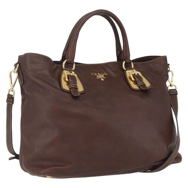 • 【原宿店限定】プラダ PRADA ハンドバッグ レザー 2way ブラウン ゴールド レディース yk20126V