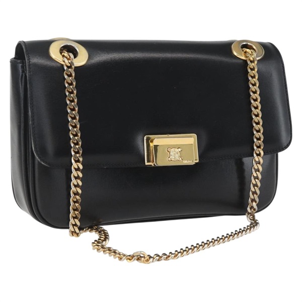 【原宿店限定】セリーヌ CELINE ショルダーバッグ チェーン レザー ブラック ゴールド レディース 148593V