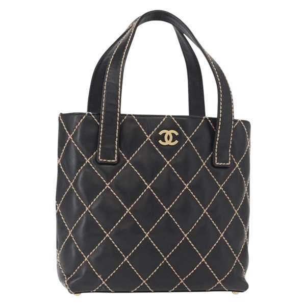 • 【原宿店限定】シャネル CHANEL トートバッグ ワイルドステッチ ラムスキン ブラック ゴールド レディース 158675SAV