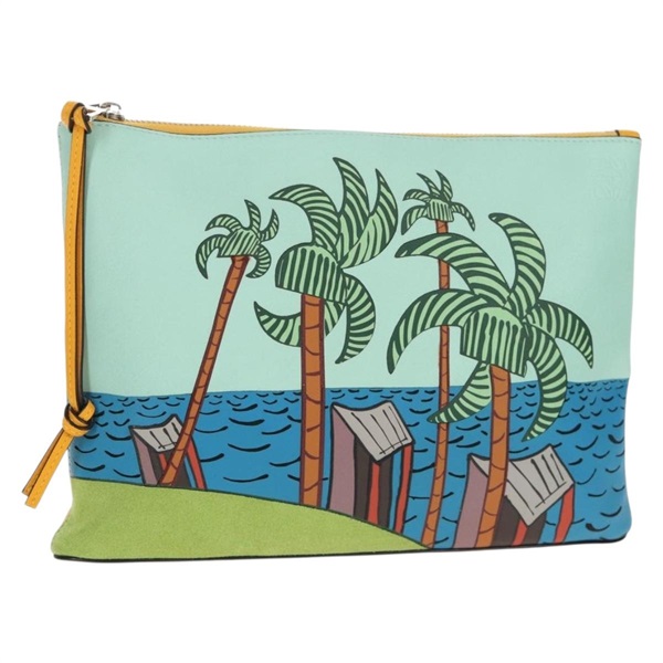 • 【原宿店限定】ロエベ LOEWE クラッチバッグ アナグラム レザー ライトブルー シルバー レディース 154086M