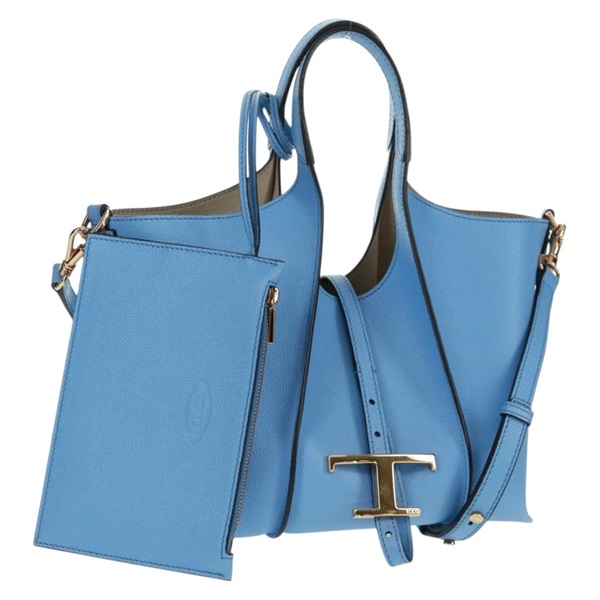 • 【原宿店限定】トッズ TOD’S Tタイムイレス ショッピングバッグ ハンドバッグ レザー 2way ライトブルー ゴールド レディース am10460SM