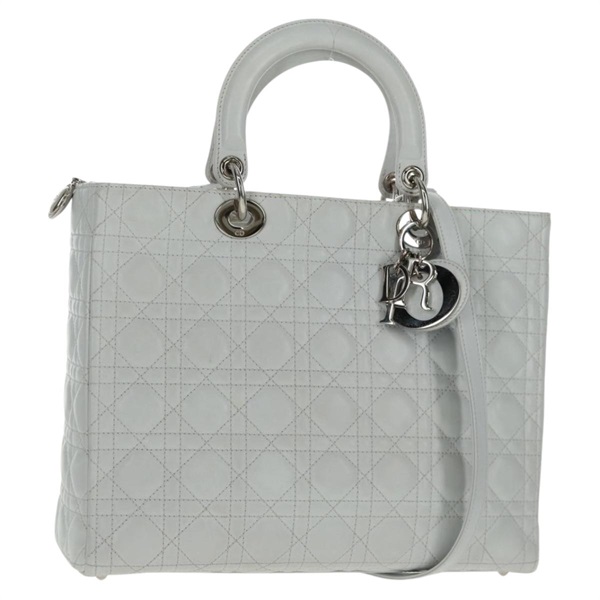 【原宿店限定】クリスチャンディオール Christian Dior レディーディオール ハンドバッグ カナージュ ラムスキン ホワイト シルバー レディース 164088SAM