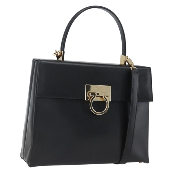 【原宿店限定】サルヴァトーレフェラガモ Salvatore Ferragamo ハンドバッグ ガンチーニ レザー 2way ブラック ゴールド レディース 164875V