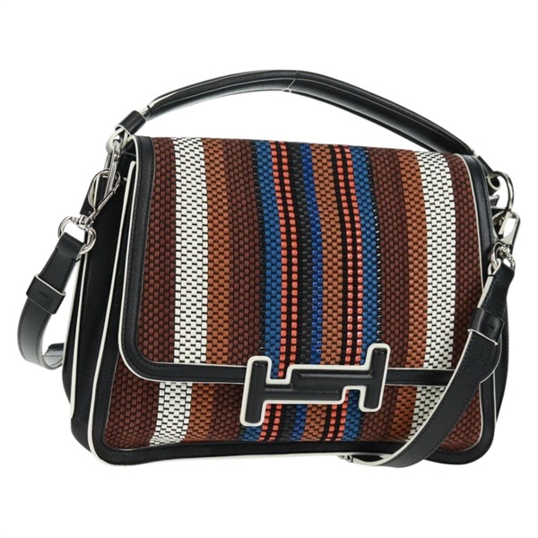 • 【原宿店限定】トッズ TOD’S ハンドバッグ ダブルT レザー 2way シルバー ブラック FP2833 レディース am10504V