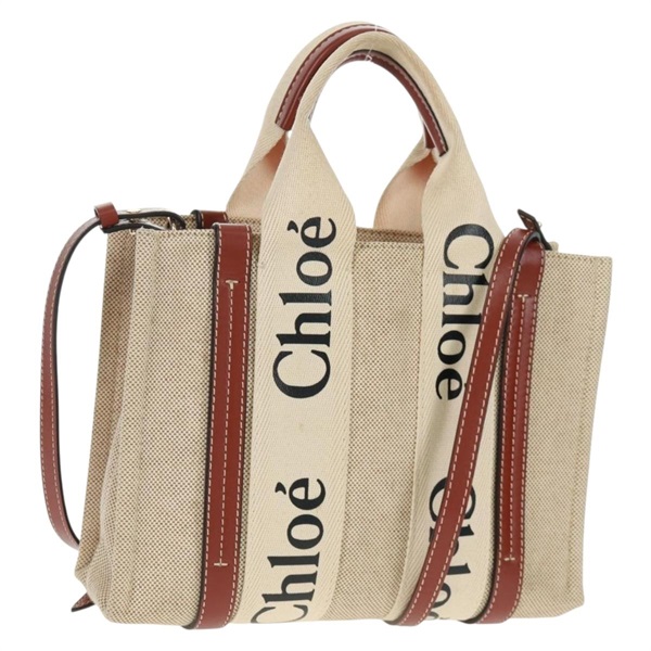 • 【原宿店限定】クロエ Chloe ハンドバッグ ウッディ キャンバス 2way ベージュ ゴールド レディース am10533V