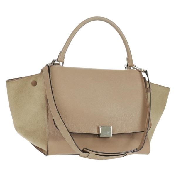 • 【原宿店限定】セリーヌ CELINE トラペーズ ハンドバッグ スエード レザー 2way ベージュ シルバー レディース 154261V