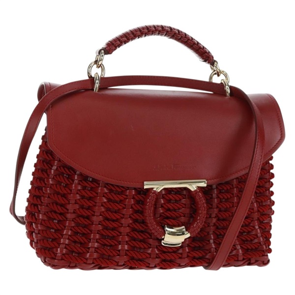 【原宿店限定】サルヴァトーレフェラガモ Salvatore Ferragamo ハンドバッグ ガンチーニ レザー 2way レッド ゴールド レディース 166355M