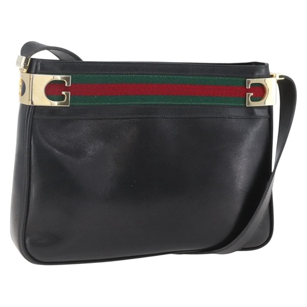 • 【原宿店限定】グッチ GUCCI ショルダーバッグ ウェブシェリーライン レザー ブラック レッド レディース 165070V