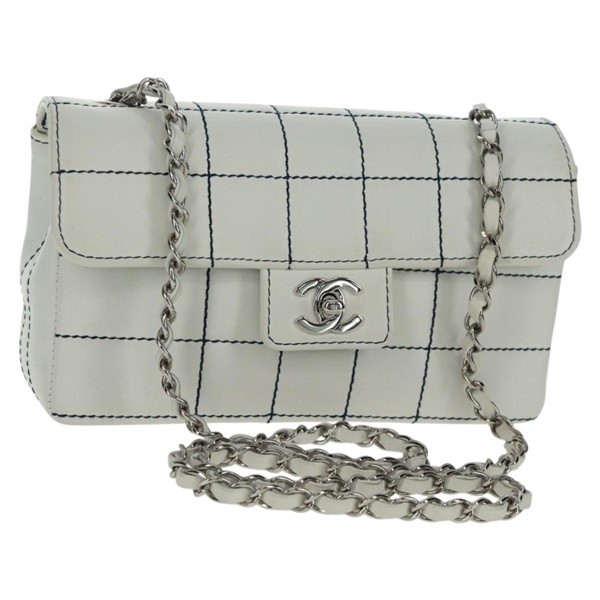 【原宿店限定】シャネル CHANEL ショルダーバッグ ワイルドステッチ チェーン チョコバーライン レザー ホワイト シルバー レディース am10536AV