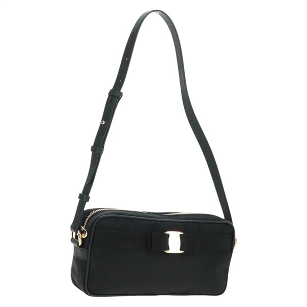 【原宿店限定】サルヴァトーレフェラガモ Salvatore Ferragamo ショルダーバッグ ナイロン ブラック ゴールド レディース SW1967V