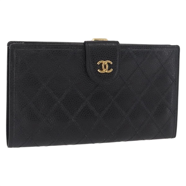 【原宿店限定】シャネル CHANEL 長財布 ビコローレ キャビアスキン ブラック ゴールド レディース bs32173V