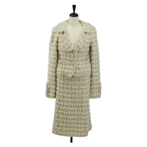 【原宿店限定】シャネル CHANEL 上着 ジャケット スカート セットアップ ツイード ホワイト メンズ 159923V