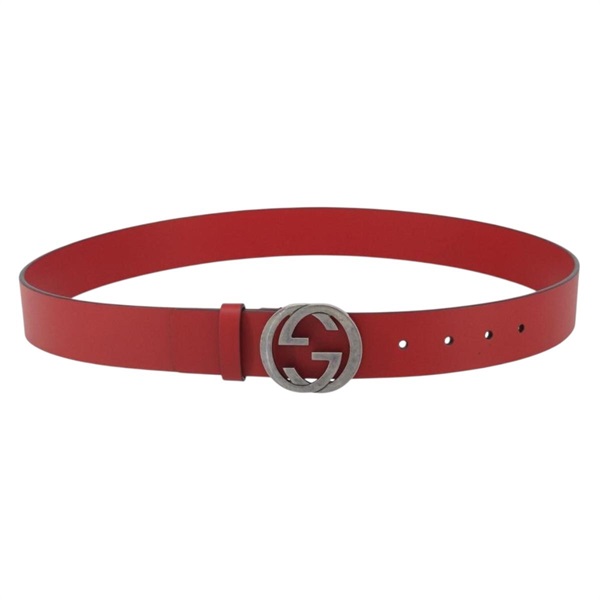 • 【原宿店限定】グッチ GUCCI ベルト インターロッキングG レザー 109cm レッド シルバー 546389 レディース SW1973V