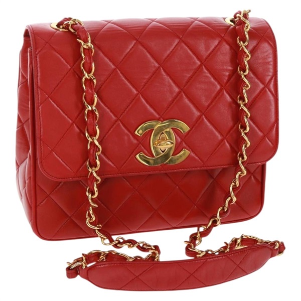 • 【原宿店限定】シャネル CHANEL ショルダーバッグ マトラッセ チェーン ラムスキン レッド ゴールド レディース 168176V