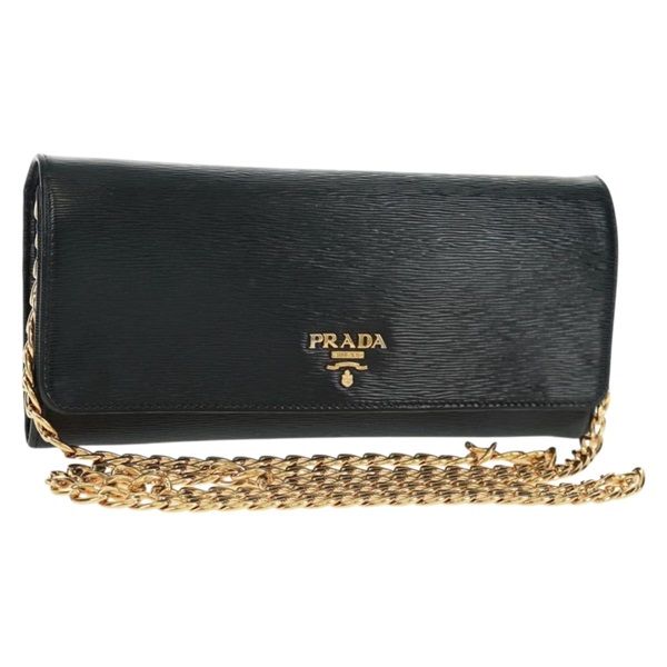 • 【原宿店限定】プラダ PRADA ショルダーバッグ チェーン ウォレット レザー ブラック ゴールド レディース 165528V