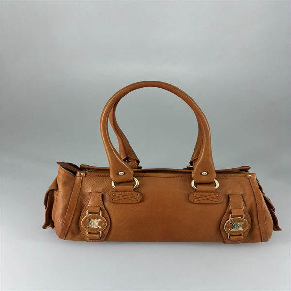 CELINE マカダム イーストウエスト ボストンバッグ ブラウン ゴールド レザー