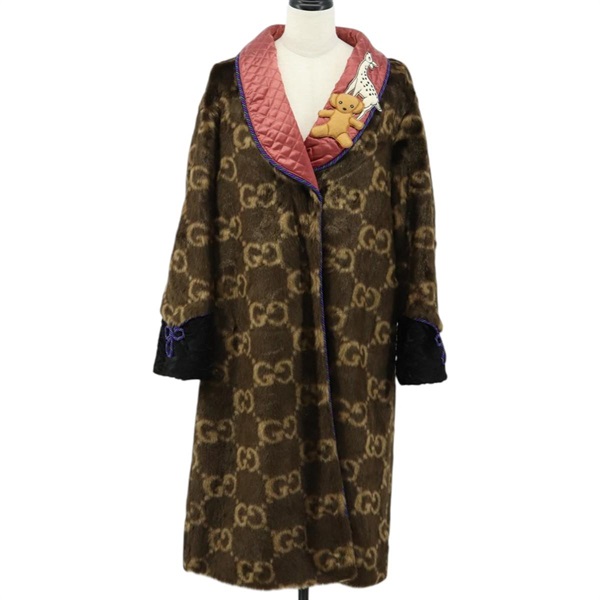 • 【原宿店限定】グッチ GUCCI 上着 GGキャンバス ファーコート テディベアアップリケ ブラウン レディース SW2127SM