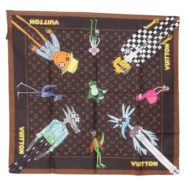 • 【原宿店限定】ルイ・ヴィトン LOUIS VUITTON LVフレンズバンダナ スカーフ モノグラム シルク ブラウン MP2954 レディース 166390V