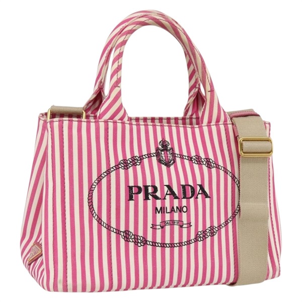 プラダ PRADA カナパ ミニ ハンドバッグ キャンバス 2way ピンク ゴールド レディース ARZ391V