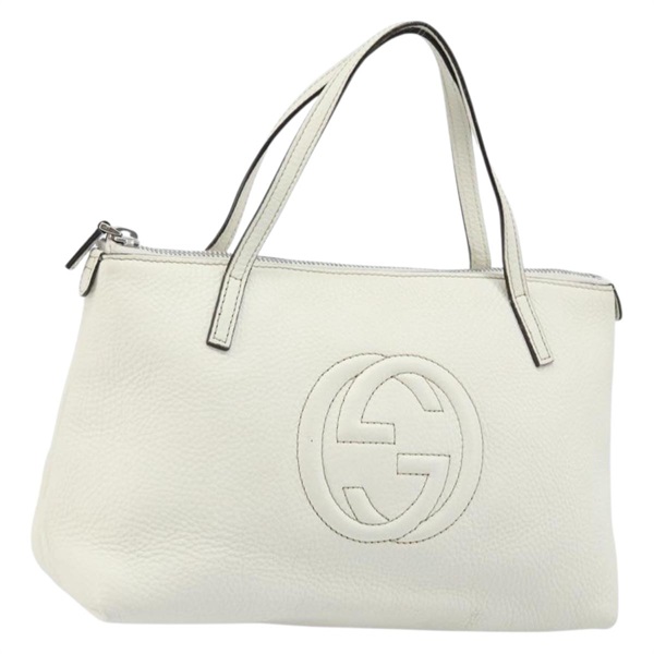 • グッチ GUCCI ハンドバッグ レザー ホワイト シルバー 340618 レディース ka2939A