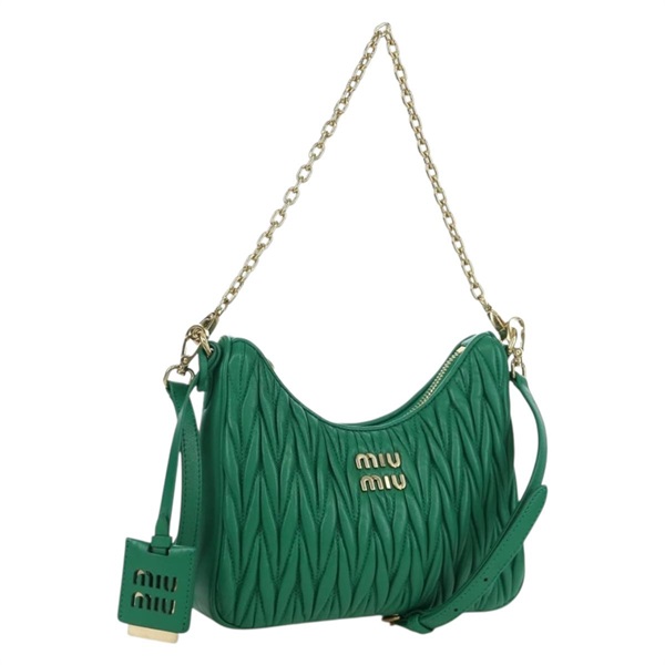 • ミュウ ミュウ Miu Miu ショルダーバッグ マテラッセ チェーン レザー 2way グリーン ゴールド レディース 171450SAM
