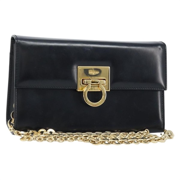 • サルヴァトーレフェラガモ Salvatore Ferragamo ショルダーバッグ ガンチーニ チェーン レザー ブラック ゴールド レディース ARZ418V