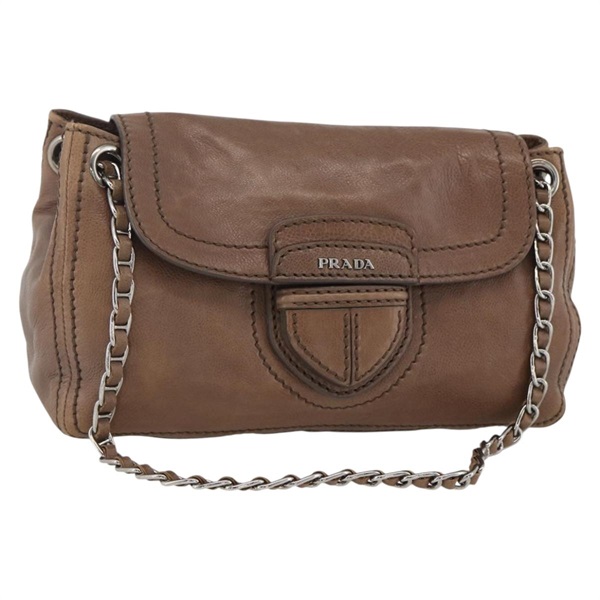 • プラダ PRADA ショルダーバッグ チェーン レザー ブラウン シルバー レディース BSZ238V