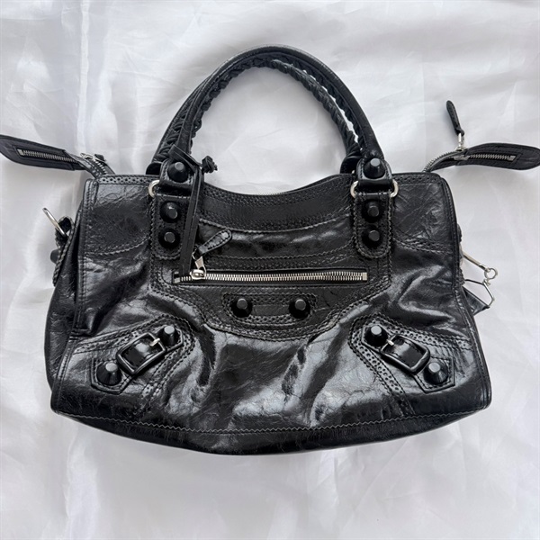 • BALENCIAGA ジャイアント シティ ショルダーバッグ ブラック レザー