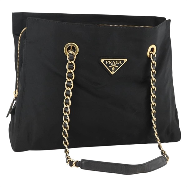 • プラダ PRADA トートバッグ チェーン ナイロン ブラック ゴールド レディース am10950A