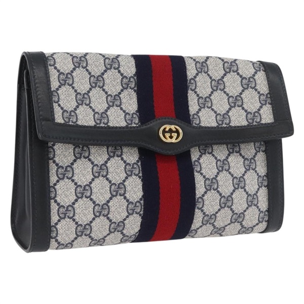 グッチ GUCCI クラッチバッグ GGスプリーム シェリーライン PVC ネイビー レッド レディース am10928V