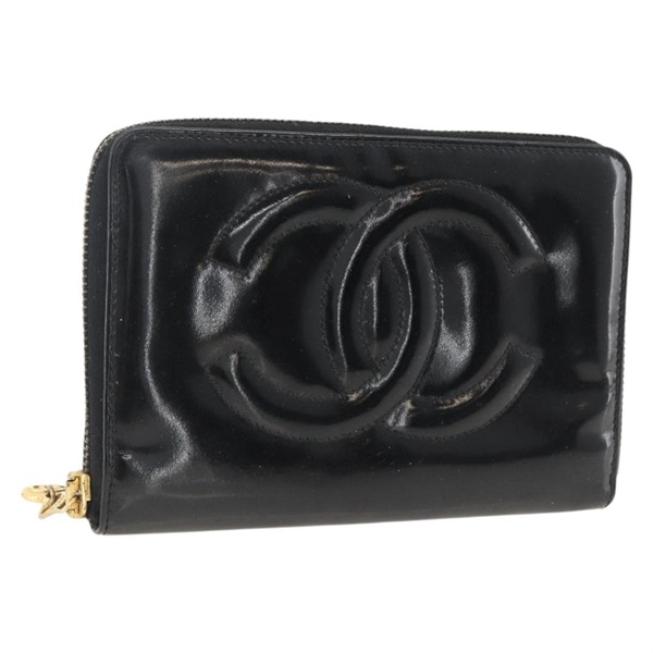 • シャネル CHANEL コンパクト財布 長財布 パテントレザー ブラック レディース am10949A