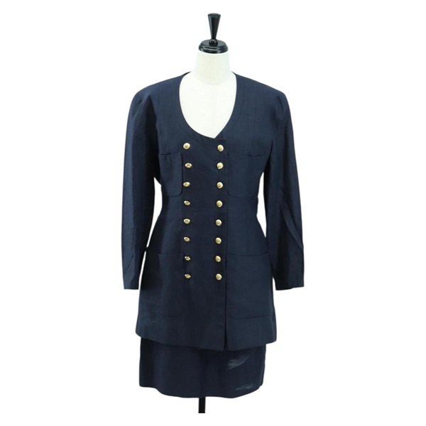 シャネル CHANEL 上着 ジャケット スカート セットアップ リネン ネイビー メンズ 158556M