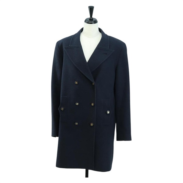 シャネル CHANEL ダブルブレストジャケット コート 上着 コットン ネイビー レディース am10874V