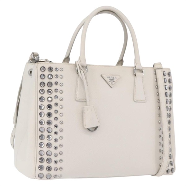 プラダ PRADA ハンドバッグ サフィアーノレザー 2way ホワイト シルバー レディース ka3399V