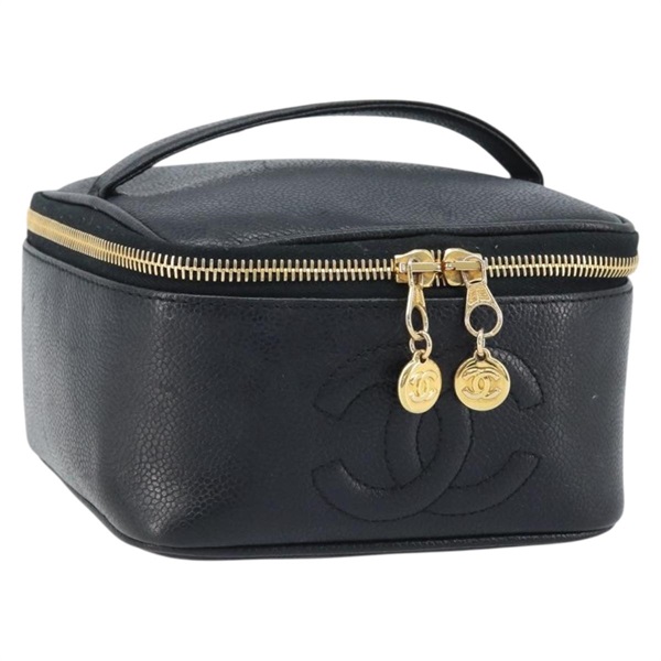 シャネル CHANEL ハンドバッグ ココマーク バニティ キャビアスキン ブラック ゴールド レディース AMZ093A
