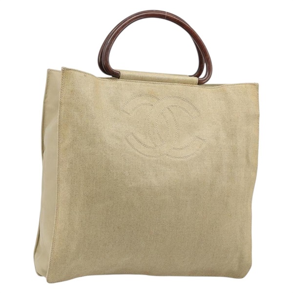 シャネル CHANEL ハンドバッグ ココマーク ウッドハンドル キャンバス ベージュ ゴールド レディース AMZ163A