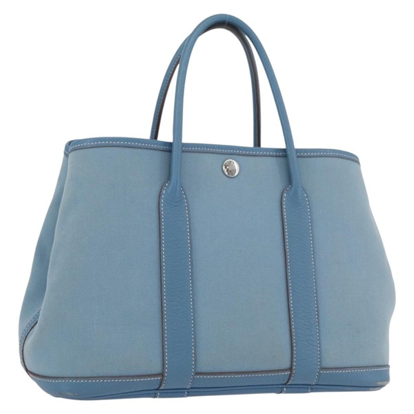 • エルメス HERMES ガーデンパーティTPM ハンドバッグ キャンバス ライトブルー シルバー レディース YKZ789A