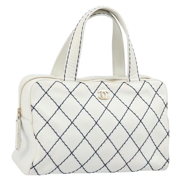 シャネル CHANEL ハンドバッグ ワイルドステッチ レザー ホワイト ゴールド レディース BAZ253A