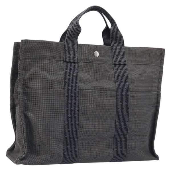 エルメス HERMES エールラインMM ハンドバッグ キャンバス グレー シルバー レディース BAZ598A