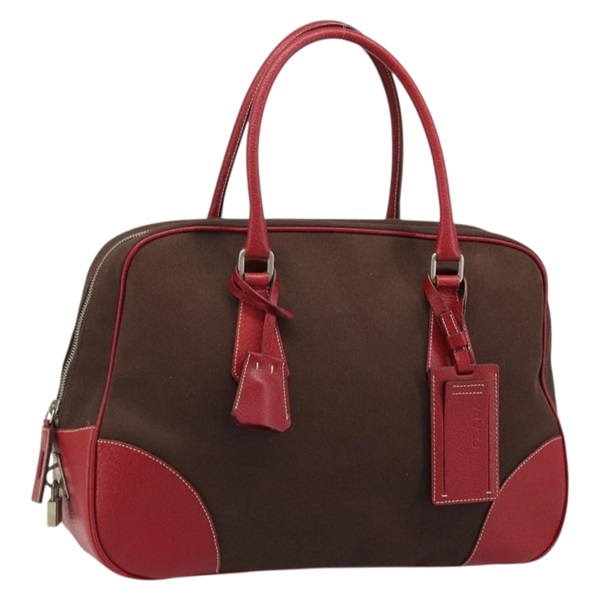 プラダ PRADA ハンドバッグ キャンバス ブラウン レッド レディース ka3642A