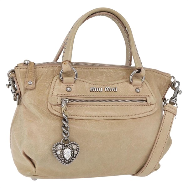• ミュウ ミュウ Miu Miu ハンドバッグ レザー 2way ベージュ シルバー レディース YKZ239A