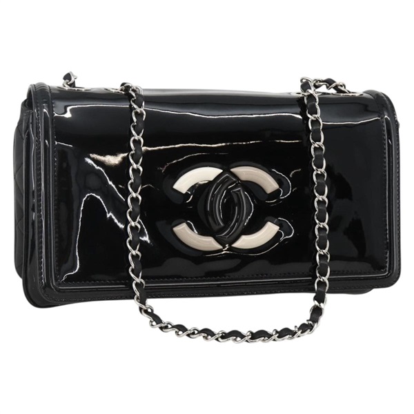 シャネル CHANEL ショルダーバッグ リップスティックライン チェーン パテントレザー ブラック シルバー レディース ka3406SAV