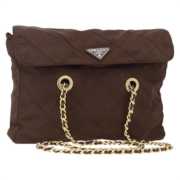 • プラダ PRADA ショルダーバッグ チェーン ナイロン ブラウン ゴールド レディース bs34096A