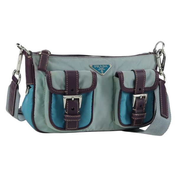 • プラダ PRADA ショルダーバッグ ナイロン レザー ライトブルー シルバー レディース 170559V