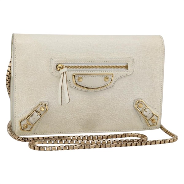 バレンシアガ BALENCIAGA ショルダーバッグ チェーンウォレット レザー ホワイト ゴールド 444169 レディース 167209A