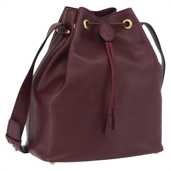 • カルティエ CARTIER ショルダーバッグ マストライン 巾着 レザー ボルドー ゴールド レディース 174474A