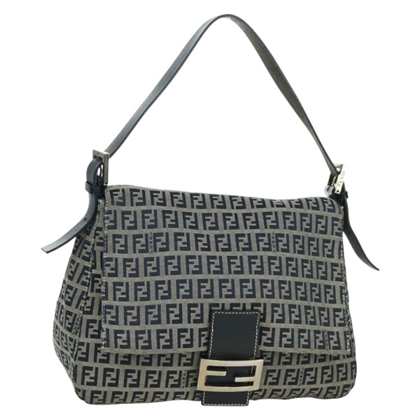 フェンディ FENDI マンマバゲット ショルダーバッグ ズッキーノキャンバス ネイビー シルバー レディース YKZ796SAV