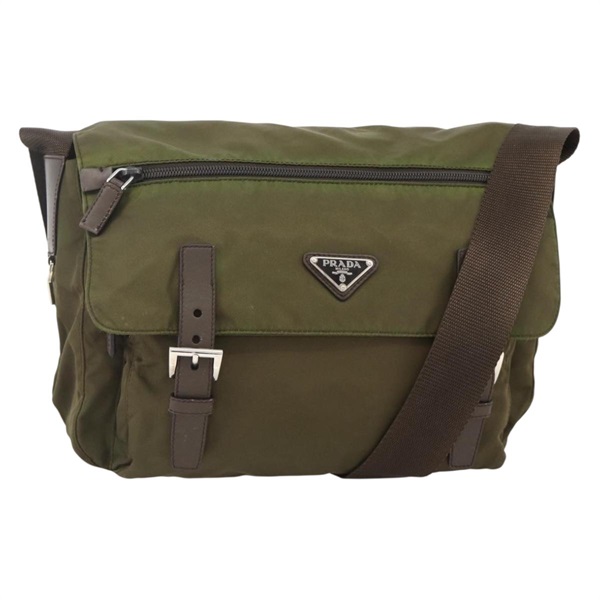 プラダ PRADA ショルダーバッグ ナイロン カーキ シルバー レディース BAZ105A